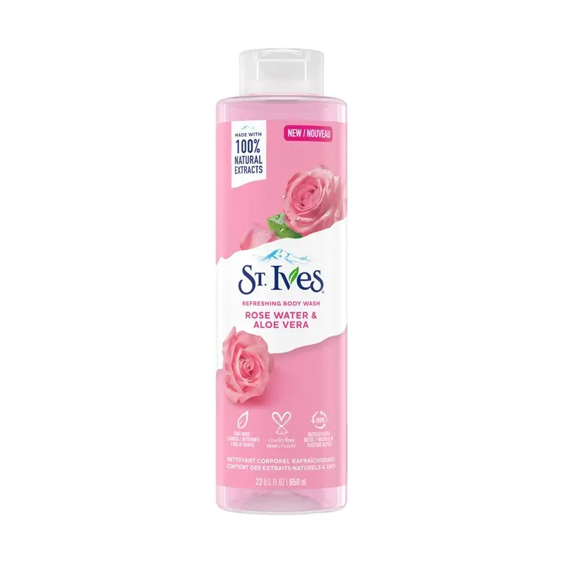 - ST. IVES REFRESHING BODY WASH invigorates every shower with the scent of rose water and aloe vera for an experience that wakes you up unlike any other shower gel or bar soap.