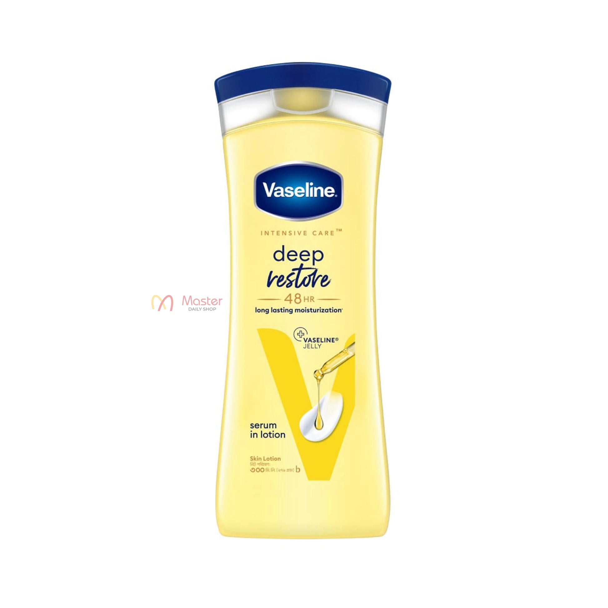 Vaseline Deep Restore 48HR Serum-In-Lotion is designed to provide intense moisturization and nourishment for dry skin. Enriched with Vaseline Jelly Micro-Droplets and Deep Restore Serum, this lotion deeply penetrates the skin to repair dryness and restore natural softness and smoothness.